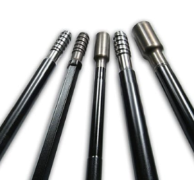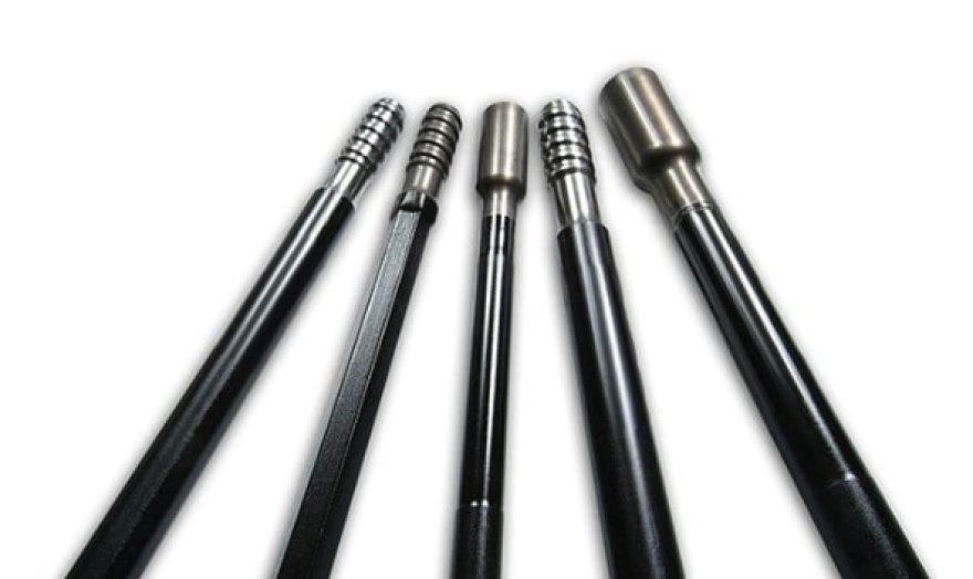 Las barras de extensión se fabrican con aceros de perforación huecos; existen dos formas: redondas y hexagonales. Este orificio hueco se suele denominar orificio de descarga y se utiliza para el paso de agua o aire durante la perforación. Las roscas se pueden utilizar para conectar acoplamientos, vástagos, acoplamientos o brocas.